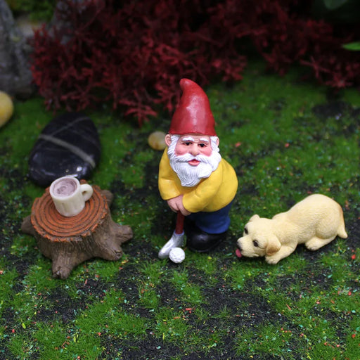 Prezzo originale €12,59Prezzo attuale €9,354 pz/set divertenti Mini gnomi giocare a Golf Dog resina nani Sport statua carino fai da te per scrivania Bonsai decorazione ornamento Dropshipping