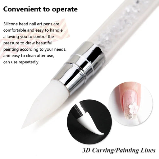 Prezzo originale €4,41Prezzo attuale €3,43| /Penna per scultura in silicone a doppia estremità per nail art, strumento per la progettazione delle unghie facile e preciso, pennello per punteggiare glitter per intaglio 3D