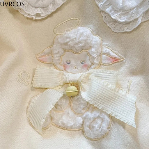 Original price €51,60Current price €36,00| /Primavera autunno Kawaii Lolita felpe donna Cute Cartoon Sheep ricamo Peter Pan Collar pullover cappotto Y2k felpe con cappuccio larghe