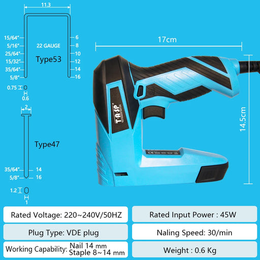 from €42,83| /TASP 230V Cucitrice elettrica Costruzione di mobili Pistola sparachiodi Tacker 14mm Graffette e chiodi Utensili elettrici per tappezzeria domestica Fai da te