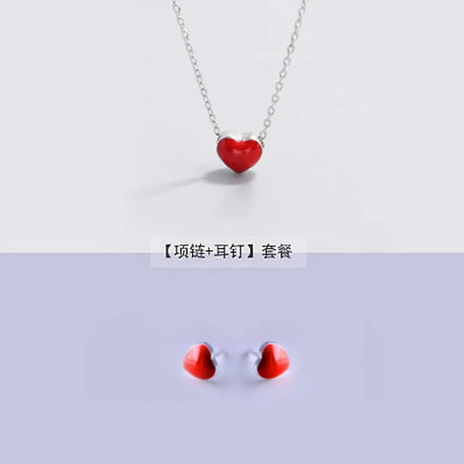 from €5,43| /Orecchini ad ago in argento 925 + collana per set di gioielli da donna Orecchini a bottone a forma di cuore con smalto rosso minuscolo carino per ragazze Regalo per bambini