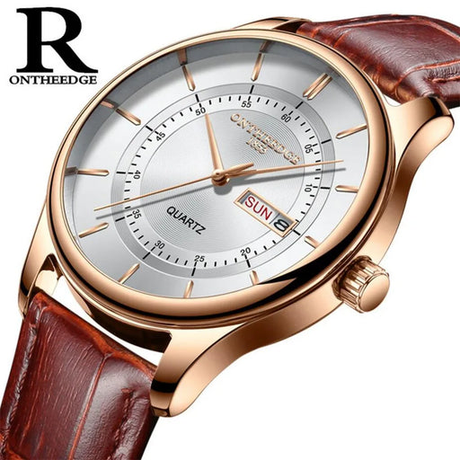 Original price €25,84Current price €18,03| /Orologio da uomo con quadrante in oro rosa di alta qualità Orologi impermeabili in pelle Business Fashion Movimento al quarzo giapponese Data Orologio maschile reloj