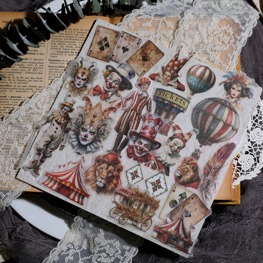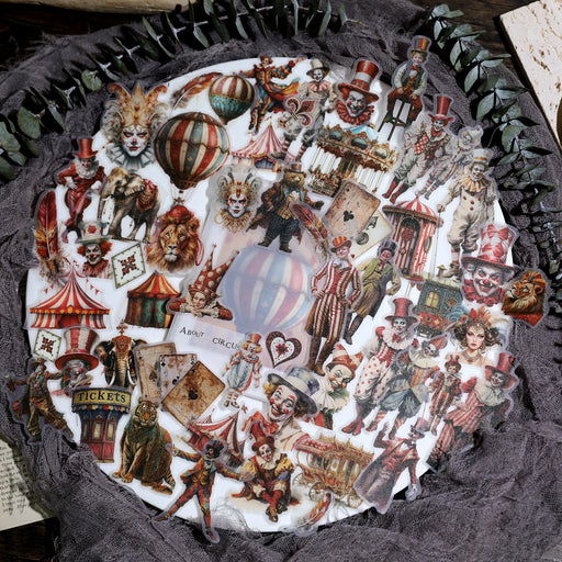 Original price €8,62Current price €6,70| /58pcs Retro Clown Stickers Collage Junk Journal Planner decorativo Circus Lion Stickers Album trasparente materiale Scrapbooking