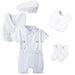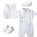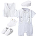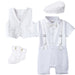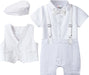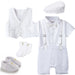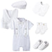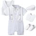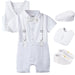 Baby Boys Battesimo Outfit Infantile Matrimonio Gentleman Set Battesimo Abito formale per festa di compleanno Reggicalze Papillon Pagliaccetto