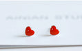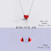 Orecchini ad ago in argento 925 + collana per set di gioielli da donna Orecchini a bottone a forma di cuore con smalto rosso minuscolo carino per ragazze Regalo per bambini
