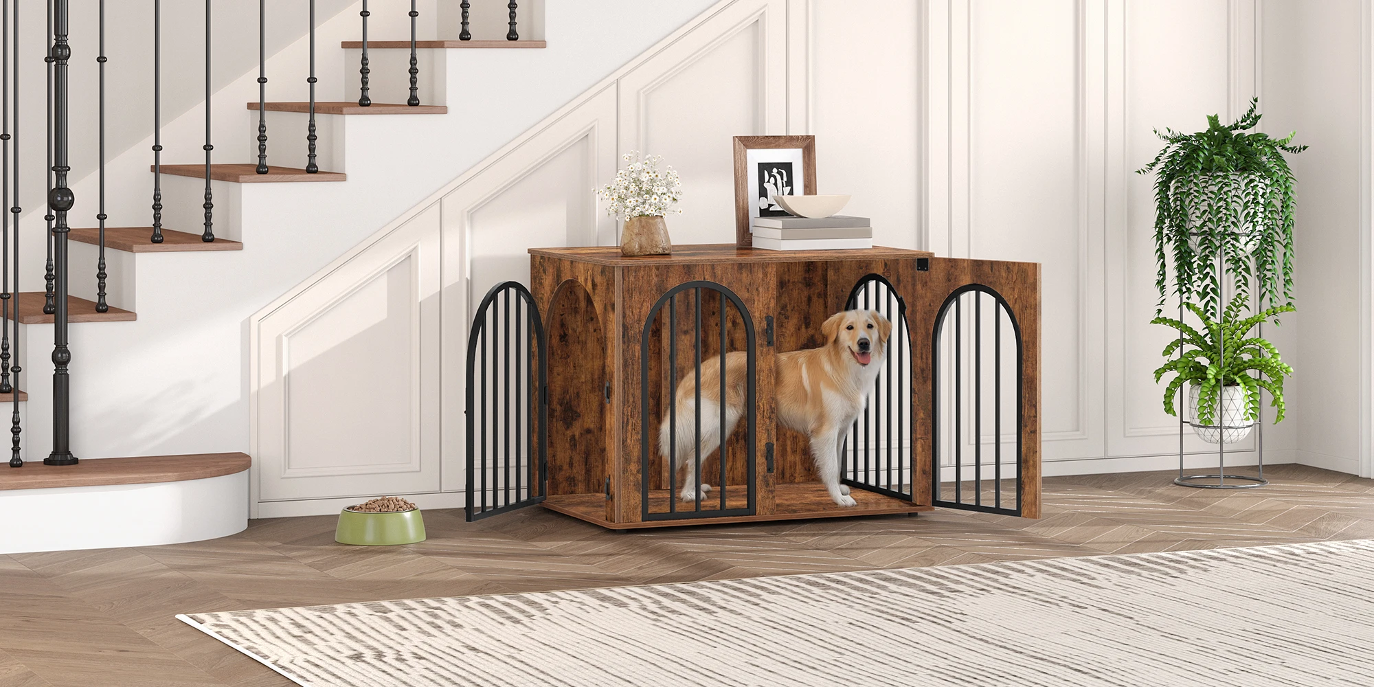 GABBIA DECORATIVA PER ANIMALI DOMESTICI Questo è molto più di una semplice gabbia per cani, può essere utilizzato anche come tavolo TV, tavolino da caffè o tavolino nel soggiorno.In camera da letto può essere utilizzato come comodino o posizionato ai piedi del letto
